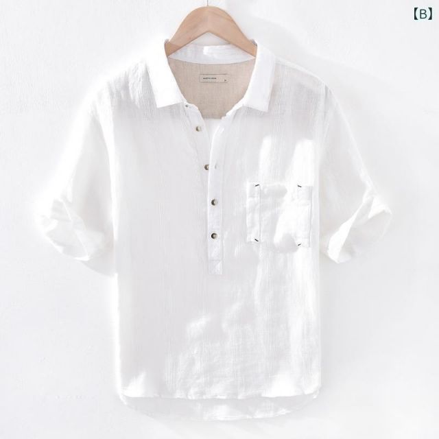 普段使いに最適 XL メンズ ファッション 服 オシャレ シンプル 大人 かっこいい 大きいサイズ ストリート 紳士服 リネン シャツ 半袖 夏 冷感 薄手 ラウンド カジュアル シャツ
