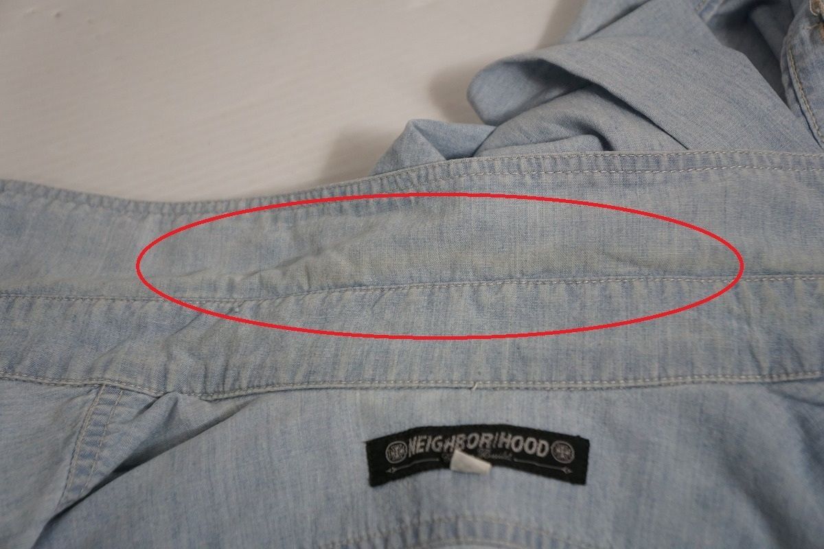 正規 90s NEIGHBORHOOD ネイバーフッド ポケット シャンブレー 長袖 シャツ ロングスリーブ ビンテージ 薄青 スカイブルー 本物 325P 2 FENIXDESIGN_NET
