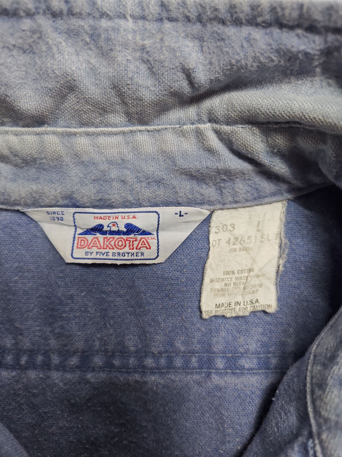 80s DAKOTA by FIVE BROTHER シャモアクロスシャツ ライトブルー Lサイズの検索結果